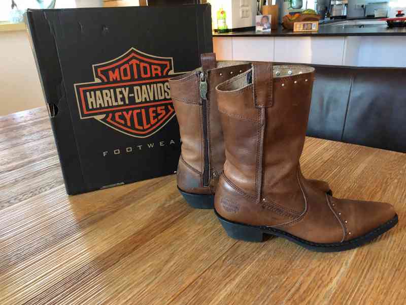 Kožené dámské boty na chopper originál od značky Harley Davidson - 39. Použité jednu sezónu, celkově velmi dobrý stav.