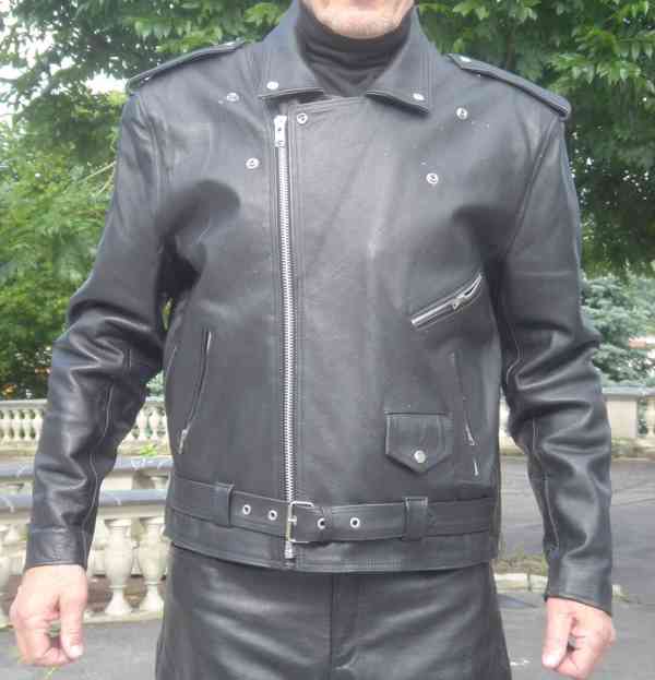 Materiál 1,3 mm silná hovězí kůže, prostorné kožené strečové panely, protektory loktů ramen kolen, zesílení švů, zipy v úrovni lýtek, vnitřní voděodolná kapsa pro možnost uložení peněženky a dokladů, atd.
