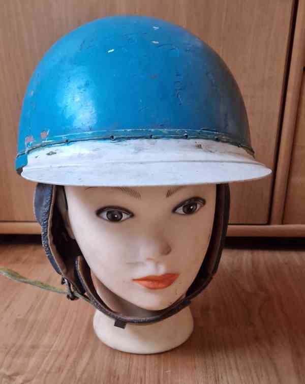 Prodám sběratelům,nebo někomu na motoveterána, tuto starou modrou přilbu s kšiltem - kokosku na starý motocykl,Výrobce Kovona Karviná.Vnitřek a zapínání OK.Velikost přilby cca na fotu.Stav nálezový,ale pořád pěkná.Třeba někdo využije.