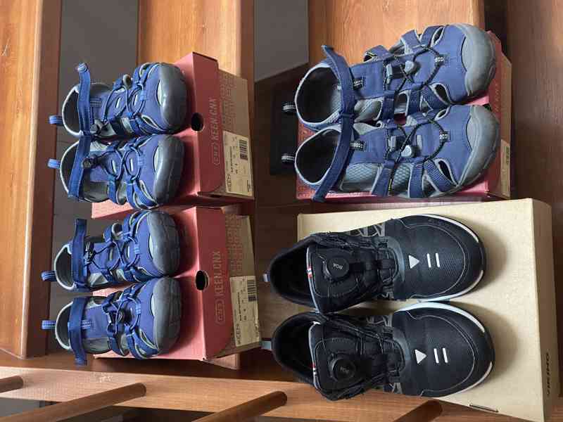 Dobrý den, nabízím Keeny na suchý zip, velikost 38 2x a velikost 39 1x. Nošené pouze synem, originál krabice. Ideálně osobní převzetí, lze zaslat přes balíkovnu dle aktuální ceny. Cena za pár 500Kč