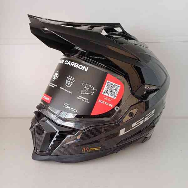 Enduro přilba od značky LS2 model Explorer Carbon Glos s plexištítem a integrovanou sluneční clonou ve velikostech M + L. Je nová a samozřejmě ve výborném stavu. Včetně originální krabice a příslušenství. Explorer je vrcholový model helmy od LS2.