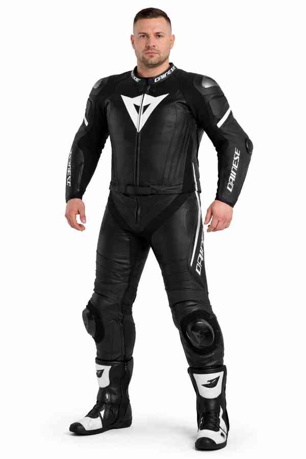 Čtvrtá generace dvoudílného kombinovaného obleku Dainese Laguna Seca nabízí špičkové designové a technologické řešení. Například zvýšený aerodynamický hrb, širší a vyměnitelné hliníkové ochranné plochy na ramenou, vyměnitelné kolenní slidery a poprvé u děleného obleku novou konstrukci loktů s rychloupínacím sliderem a hliníkovou deskou. Inovativní kůže D-Skin 2.0 a chrániče Level 2 zaručují nejvyšší bezpečnost. Inspirováno závodním světem, vytvořeno pro každý sportovní zážitek, výkon a design ze světa závodního sportu pro vaše sportovní zážitky.