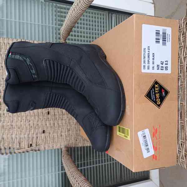 Cestovní moto boty od značky TCX model Explorer 4 Goretex ve velikosti – 42. Jsou nové, venku nepoužité pouze doma odzkoušené.