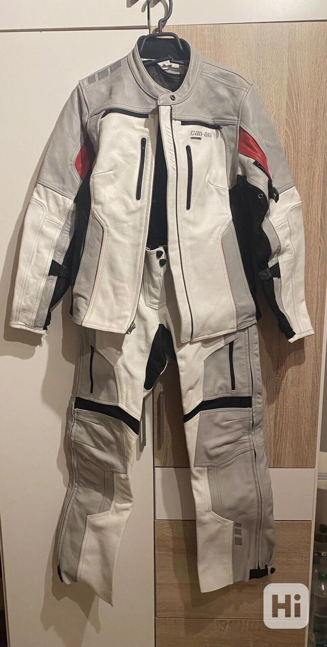 Dámská dvoudílná kožená turistická kombinéza od značky Can Am ve velikosti – S. Je v zánovním stavu, max 5× použitá, celkově velmi dobrý stav. Kůže 1,2 mm silná, zesílení na loktech a kolenou, síťová prodyšná podšívka ze 100% polyesteru, 2× kapsy, spojení zipem, atd.