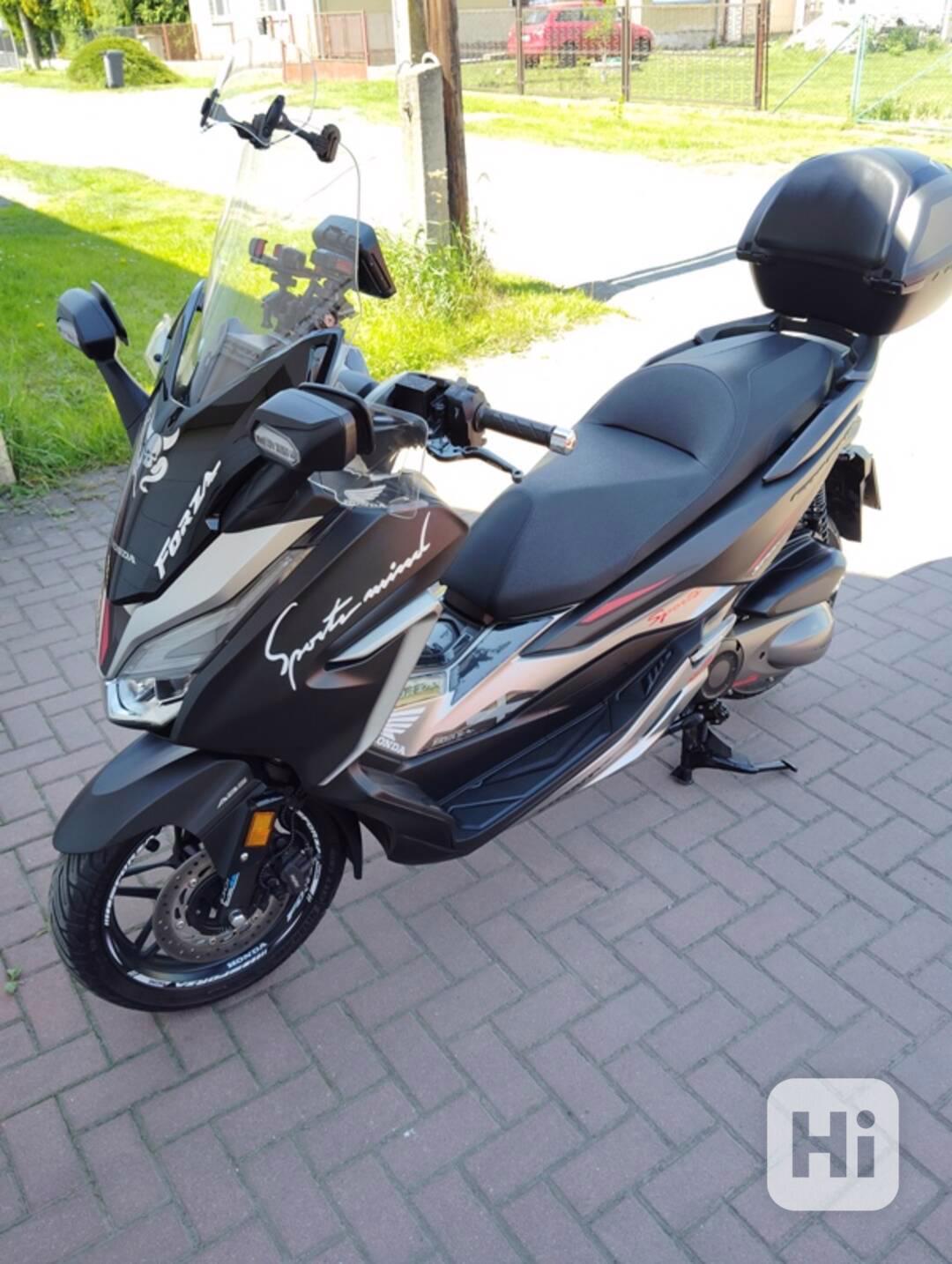 Prodám v TOP stavu a vyšperkovanou garážovanou Hondu Forza 300 typ: NFO8 (motor typ: NFO7E).r.v.:2019 barva.šedo-černá.STK do 21.3 2029 v perfektním absolutním pořádku-nikdy nehavarovaná ani nepoložená celkově bez sebemenšího poškození-vzhledově né jen povrchově ale i zespodu jako nová samozřejmě s perfektním lakem,který pravidelně ošetřován kosmetikou Meguiar's.Forza garážovaná.Najeto: 22920 km.Po celkové údržbě:Výměna-motorového oleje+filtr,převodový olej,chladící kapalina,brzdová kapalina,brzdové destičky,zapalovací svíčka, Vzduchový filtr K&N HA-3011, Variator Malossi Multivar MHR 2000 (M5114192), Vodítka sada 3ks variátoru (22011KAB000), Polořemenice Ventilvar 2000 Malossi (M.6113523B),Hnací řemen Malossi MHR XK 1026x26.4x13mm. Součástí samozřejmě servisní knížka+uživatelská příručka.Výškově nastavitelný plexi štít.Honda Forza vyšperkovaná se značkovými doplňky a to: Originál kovový palubní držák FORZA s oky a hrazdou pro motopříslušenství, originál vrchní kufr s chrom nápisem HONDA,včetně kožené opěrky a černé s plotny,Ochrana blatníku zadního kola (blatník blatníku), IPS 5“ dotykový displej přenosný moto navigátor,Moto kamera 3“ DVR Dashcam Night Vision s kamerou vpředu i vzadu. SW-Motech vypínač (vodotěsný).Plexi štít PUIG V-Tech Line Touring 1295W průhledný+přídavné plexi chrániče rukou (DF1166K).Na kolech reflexní polepy ráfků 14″15″ Forza Racing (šedé)+ Reflexní polepy vnitřní plochy ráfků 14″15″ nápisy Forza (bílé), dále 4x plašič zvěře,dále na plexi ,kapotáži,zadních stupačkách apod vinylové polepy Honda ,Sport+niklovaná lebka na kouřovém originál plexi,+ HONDA moto chrom nálepka Metal Edition (L+P)+ Epoxid polepy 3D Carbon Tank Pad a kapotáže+3D nápisy FORZA chrom a černé. Sefis BL plexi čiré navýšení SM-043156W (28 cm). U fota i servisní/tuningový protokol.Navíc přidám novou motobaterii YUASA (originál) YTZ10S MF 12V 8.6Ah 190 SP.Seriozní jednání.Spěchá pro závažné rodinné důvody. Kupní smlouva a přepis samozřejmostí.Přidám zdarma plachtu