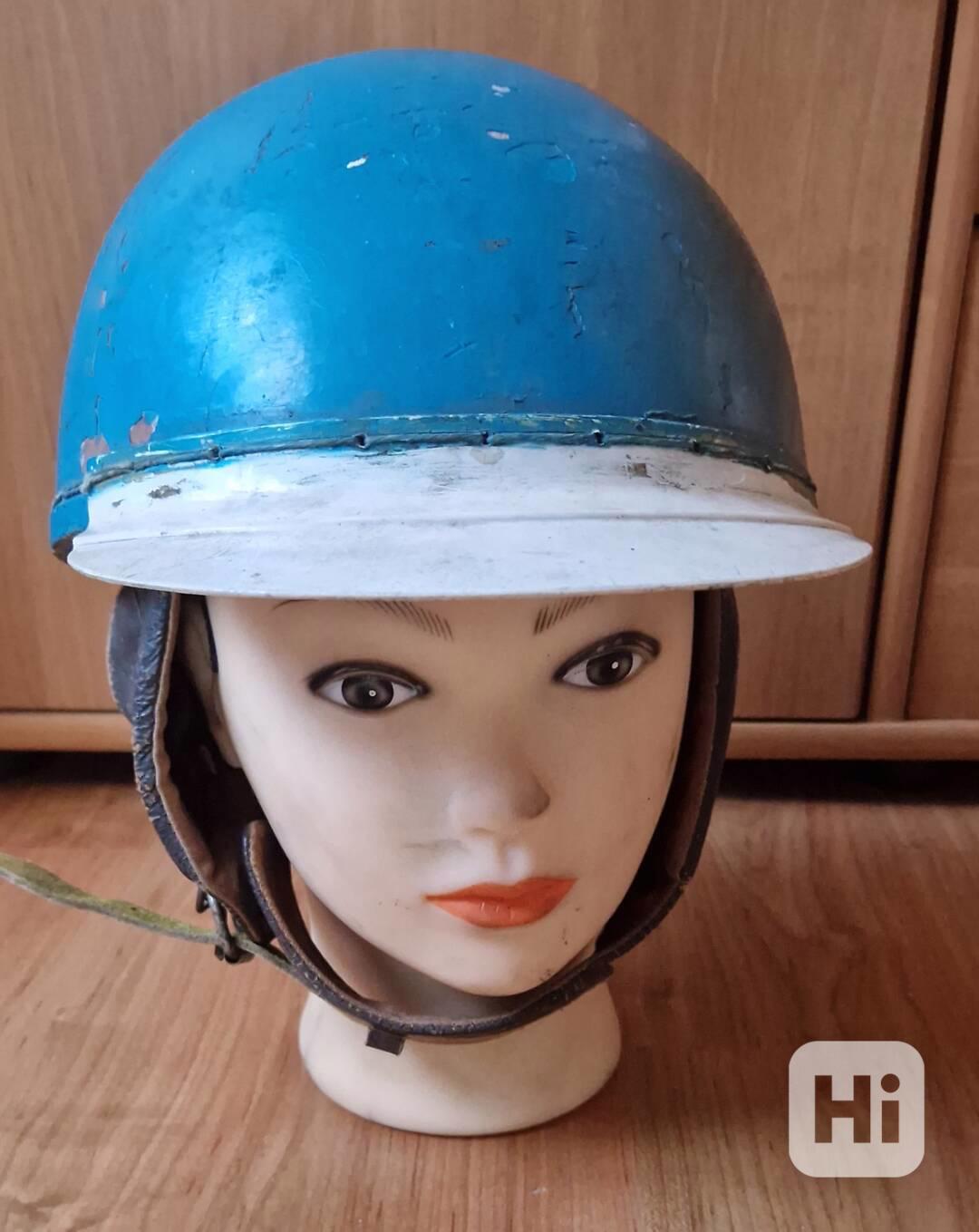 Prodám sběratelům,nebo někomu na motoveterána, tuto starou modrou přilbu s kšiltem - kokosku na starý motocykl,Výrobce Kovona Karviná.Vnitřek a zapínání OK.Velikost přilby cca na fotu.Stav nálezový,ale pořád pěkná.Třeba někdo využije.
