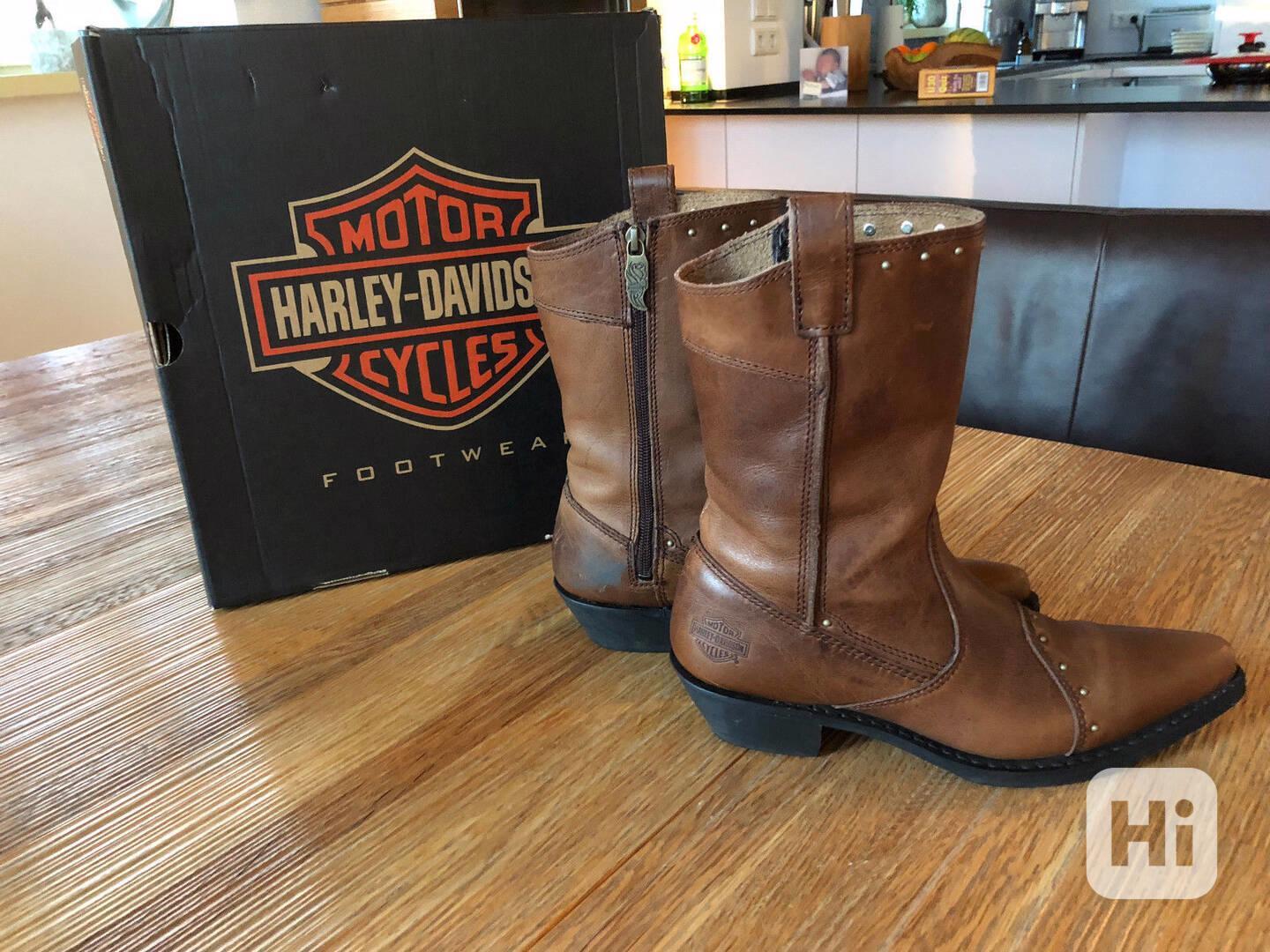 Kožené dámské boty na chopper originál od značky Harley Davidson - 39. Použité jednu sezónu, celkově velmi dobrý stav.